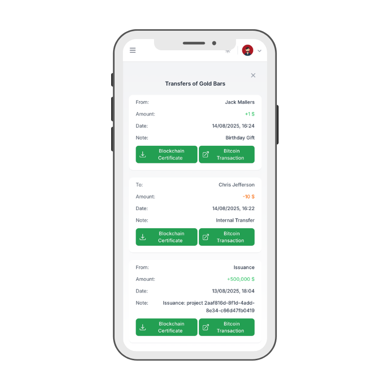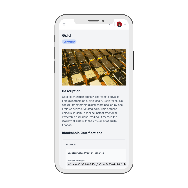Our tokenization project brings trust and innovation together. A safe, Swiss-made platform where every movement is anchored to Bitcoin for maximum transparency.